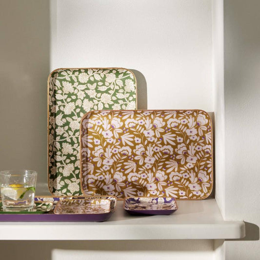 Plateau bohème chic avec fleurs en métal émaillé Tiny Curry