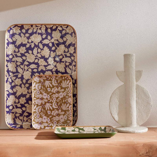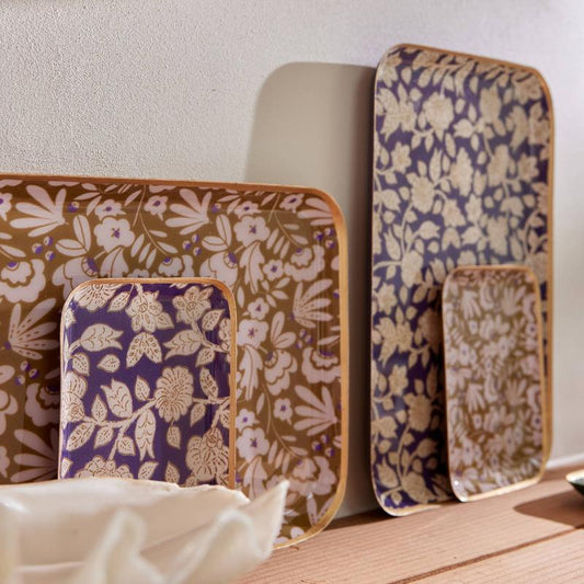 Victime de son succèsPlateau bohème chic à fleurs en métal émaillé Jaya Violine
